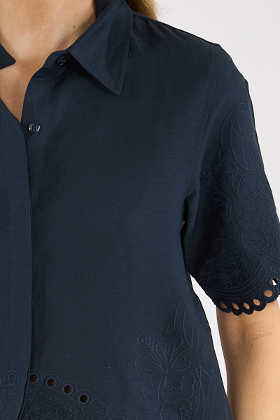 A refined take on the classic linen shirt, the Cobra Shirt blends relaxed structure with elevated detail. Crafted from washed linen with a soft, luxe feel, it features an oversized silhouette, elbow-length sleeves, tonal floral embroidery, and scalloped edges for a subtle feminine touch. Pair it with the Padma Short for a coordinated set. Intentionally oversized—size down for a more tailored fit.