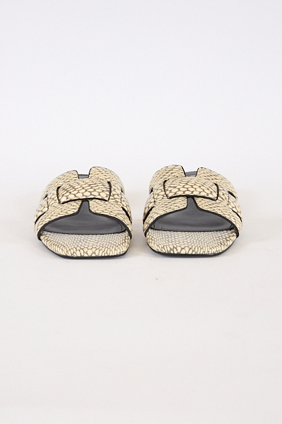 Holly is a slip on flat sandal with an all over animal skin design.
