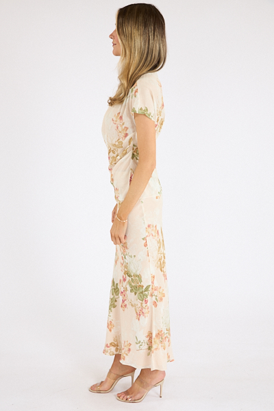 The Graceful Top is cut from fluid chiffon with a mock neckline and fluid draping.