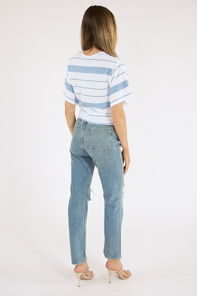 The Joanne Top is a short-sleeve, crewneck tee with a variegated design and a classic fit.