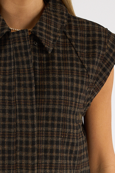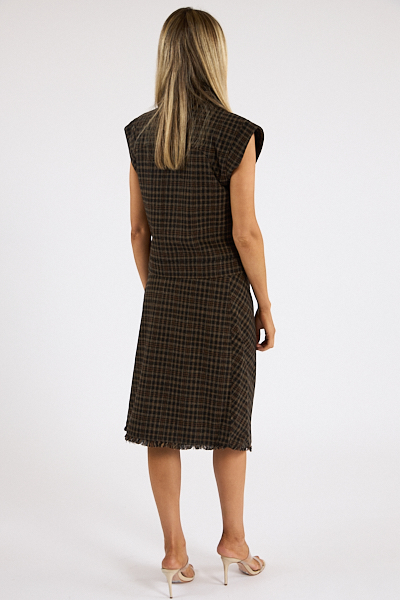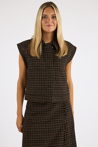 The Londyn Vest is crafted from a cozy, textured plaid and features a zip-up front closure and a high neckline.