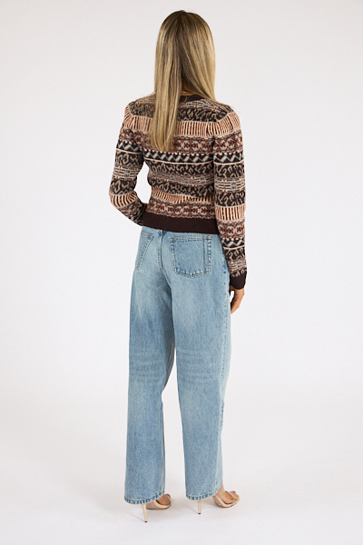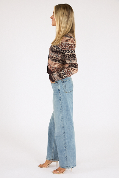 The Ruta Cardi is a slim fit cardigan designed with an all over leopard print jacquard.