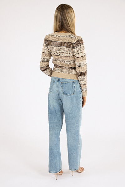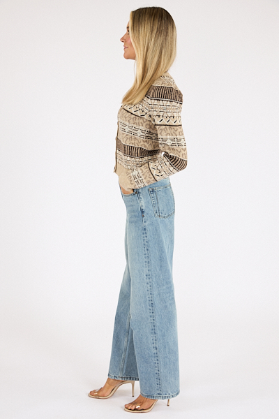 The Ruta Cardi is a slim fit cardigan designed with an all over leopard print jacquard.