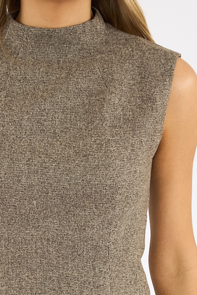 The Devon Top is a smooth silhouette with a mock neck and cap sleeve details. Pair with the matching Devon Skirt for a chic look.