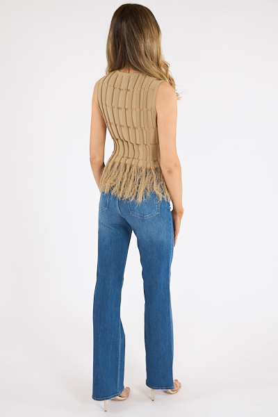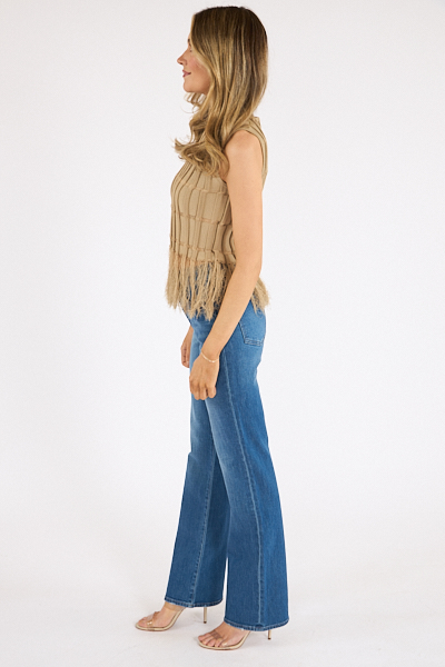 The Aria Top is a thin knit layer accented with a fun fringe hemline.