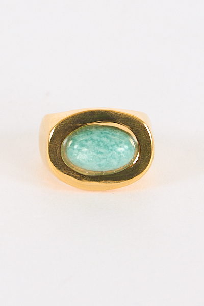Swiss resin block ring with 18k gold plated brass bezel and colored cabochon.