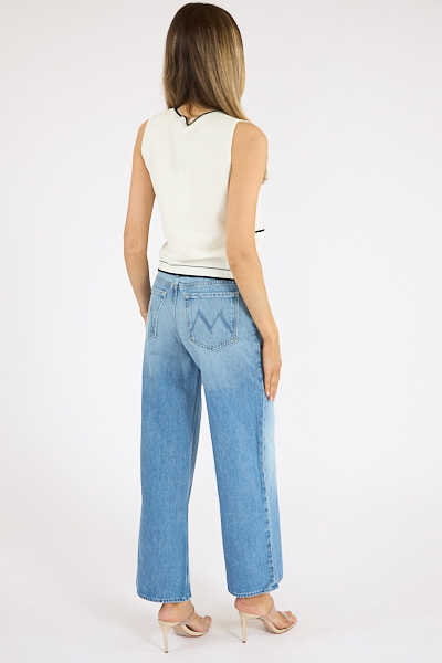 High-waisted wide leg jeans with a zip fly, long 29-inch inseam and loose, low-slung fit.
