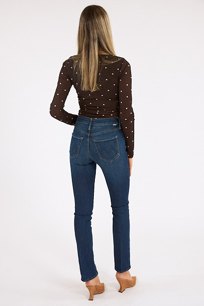 The Rascak Skimp is a mid-rise straight leg with a zip fly, long 31-inch inseam and a clean hem.