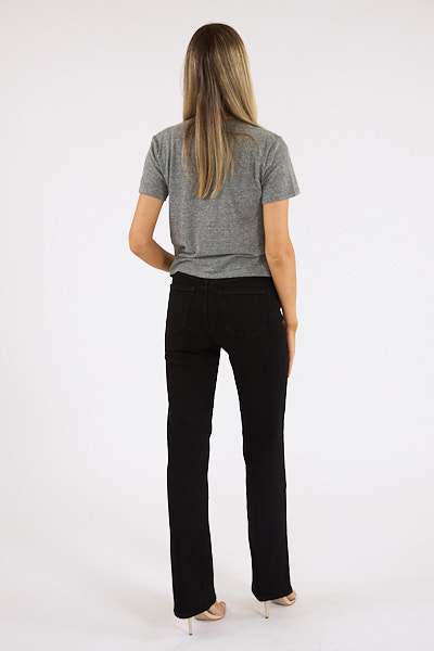 The Kick It are a high-rise straight-leg jean with a 32-inch inseam and a clean hem.