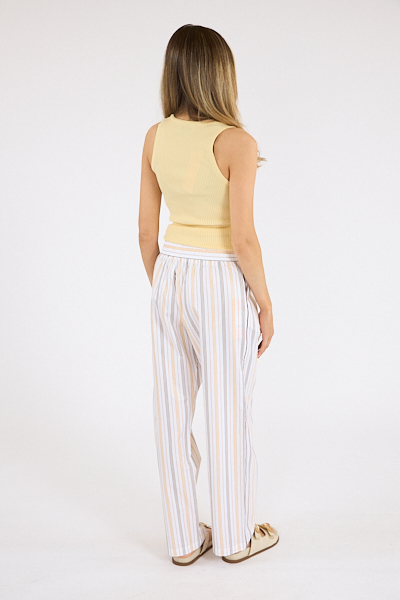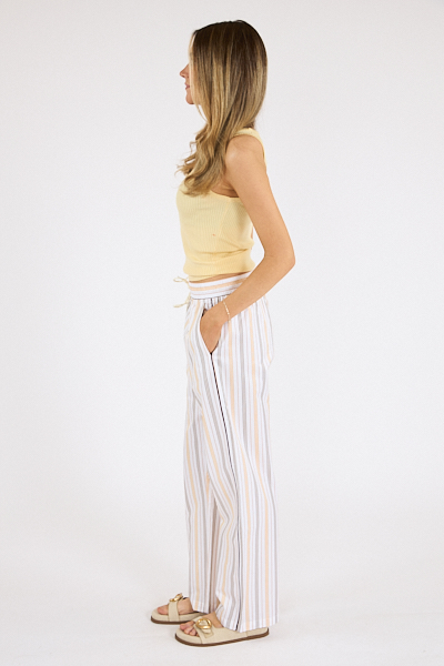 Designed in 100% cotton, Cyprus is a relaxed stripe pant with a drawstring tie waist and pockets.