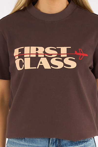 Taking you first class with this soft luxe cotton tee, accented with a First Class design.