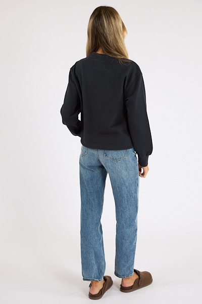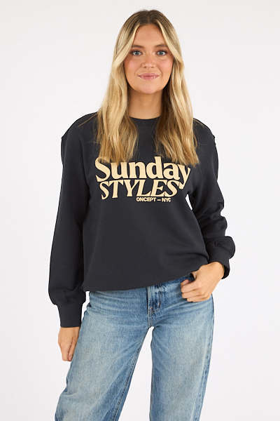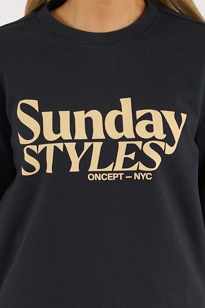 Sylvie is an elevated luxe crewneck pullover with a Sunday Styles graphic design.