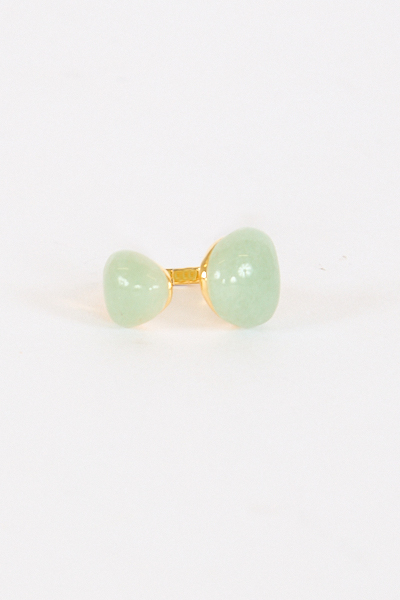 Gold plated sculptural open ring embellished with two organic green gemstones.