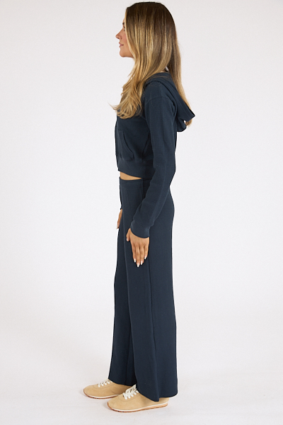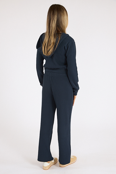 Inez is a waffle textured, relaxed zip-up with a cropped hoodie silhouette.