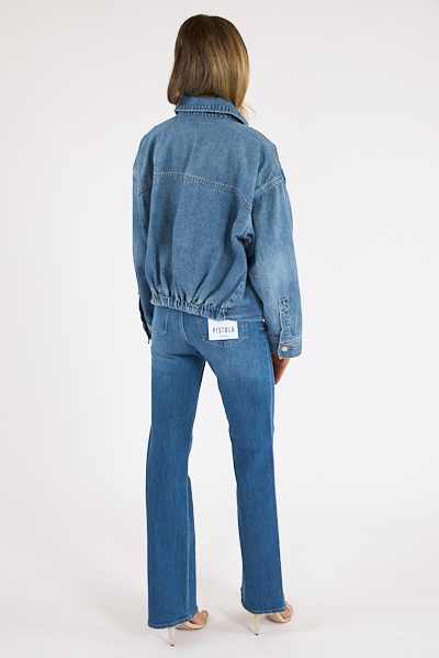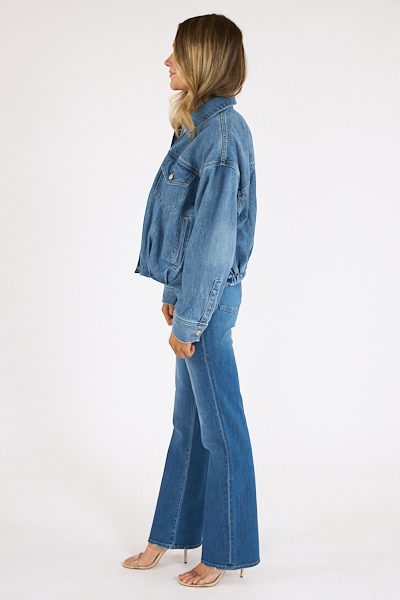 The Bibi reimagines the classic denim jacket with a softly structured, blouson silhouette.