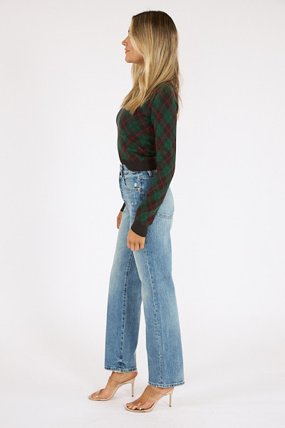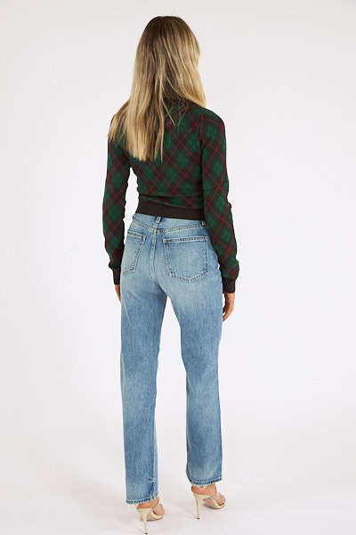 Cassie is a high rise silhouette with a classic straight leg that falls to a full-length hem, finished with a 28″ inseam.