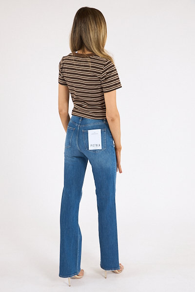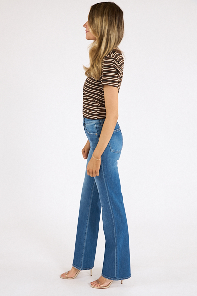 Evie elevates the classic bootcut with a high rise and slim fit that gently widens at the calf for a leg-lengthening effect.