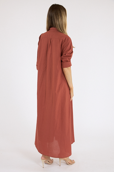The Boden is a forever timeless tailored shirtdress with a button-front, side seam pockets, and hem side slits.