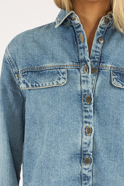 Josie is a classic denim shirt-jacket with a slightly oversized, boxy fit through the body.