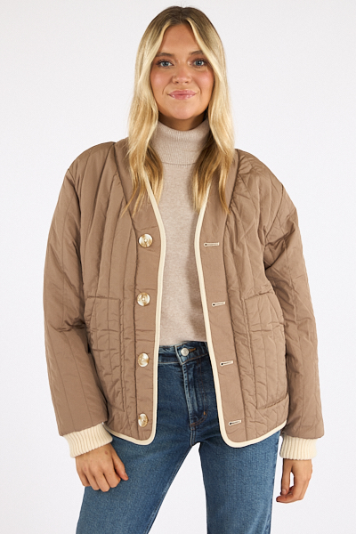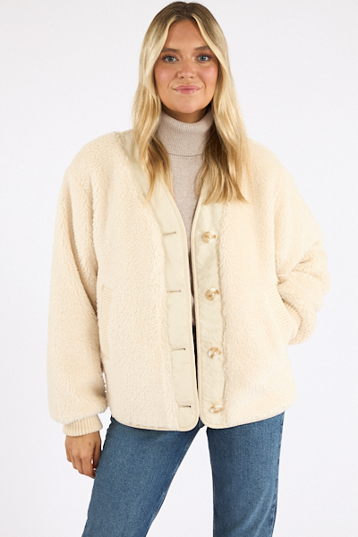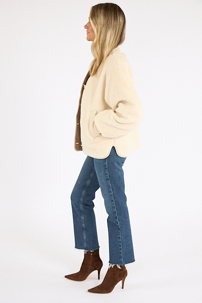 The Drew jacket is the perfect transitional throw-on made with a reversible super soft sherpa and elegantly quilted crinkle shell.
