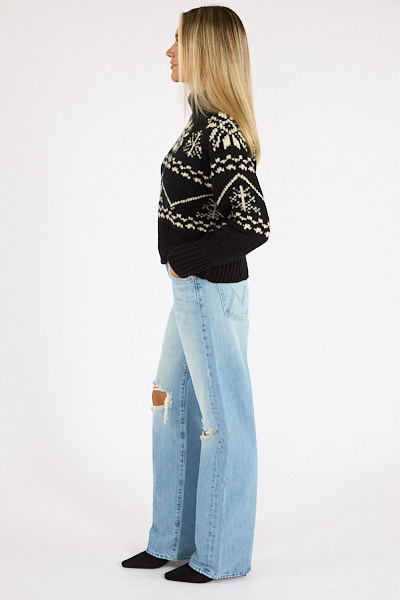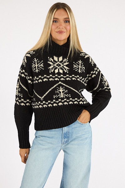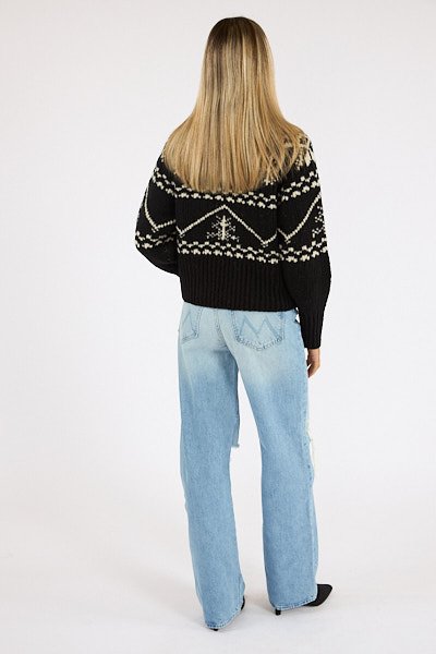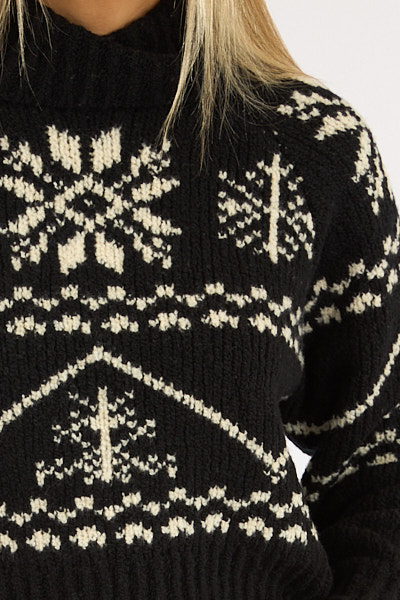 Made from a lux extra fine merino wool blend, the Cindy Sweater has a classic snowflake design created through a chunky jacquard stitch.