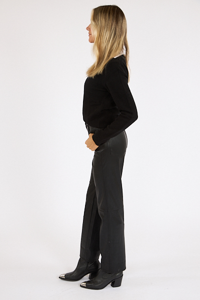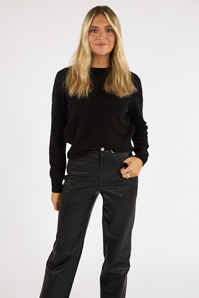 The Laon sweater is a classic crew with contrast rib knit at the neckline, sleeve cuffs, and hem.