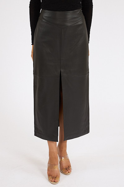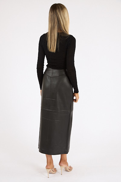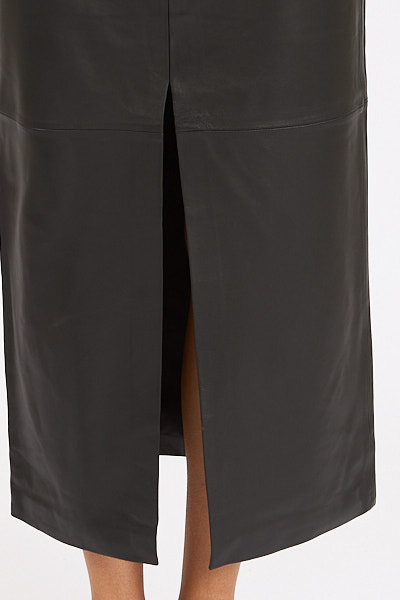 Designed in 100% authentic leather, the Beaker Skirt is an elevated update to the classic pencil skirt, featuring an elongated, slimming asymmetric yoke.