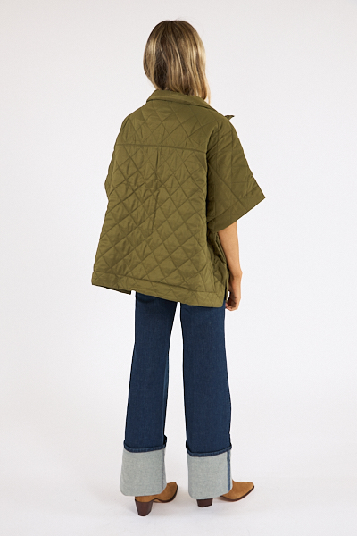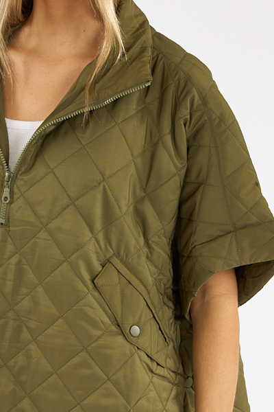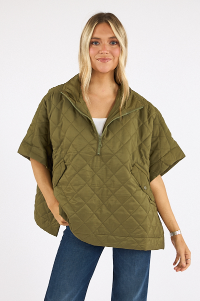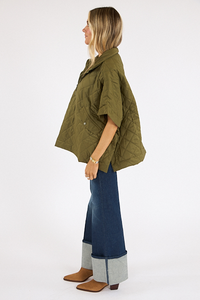 The go-to transitional layer featuring snap-close pockets, a zip-up collar, and subtle quilting for effortless function.
