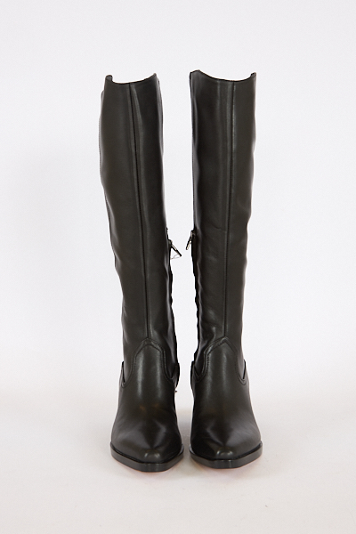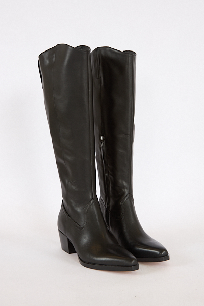 The Virona is a tall waterproof boot deisgned with a western inspired flair, stacked block heel and curved top.