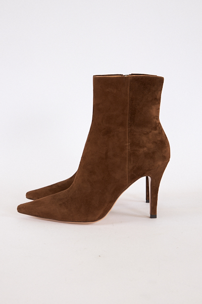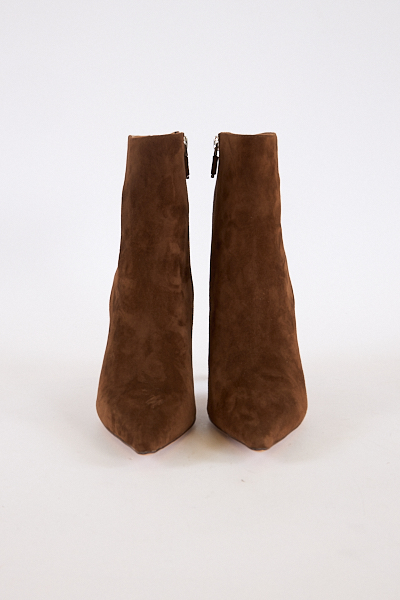 The Avellana is a stiletto bootie heel designed with a rich suede silhouette.