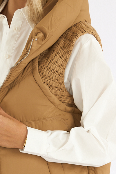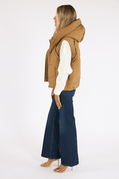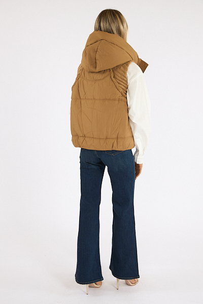 The Douglas Puffer Vest features a cozy hood for added warmth and a convenient zip-front closure, ensuring both comfort and ease of wear.