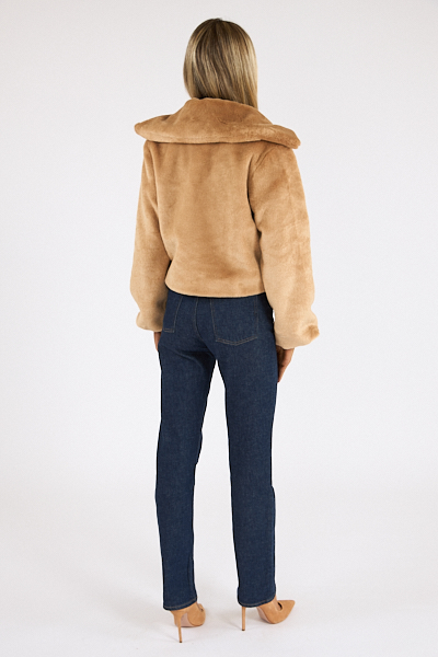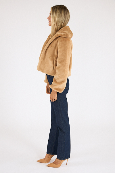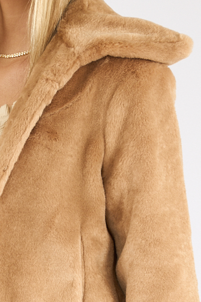 The Hailey Coat is crafted from a soft, plush faux fur and features an oversized silhouette that drapes elegantly over the body.