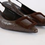 The Marron are a bold sling back kitten heel accented with a square detail on the upper.