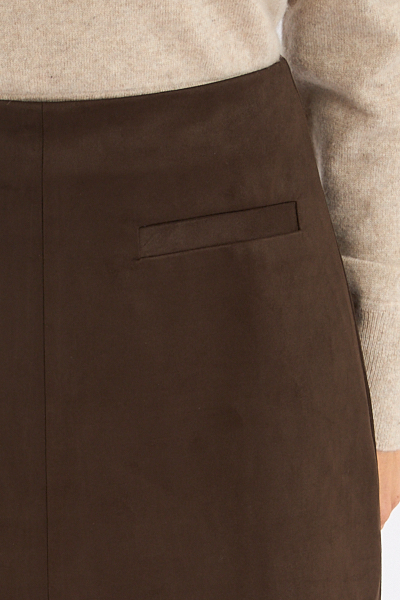 The Mina Mini Skirt is a suede number designed with faux front pockets subtly a-line silhouette.