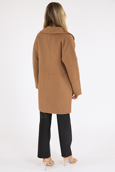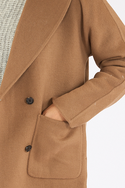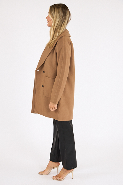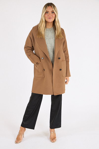 The Nily is a heavy wool blend, double-breasted coat, designed with two statement patch pockets and a knee-length fit.