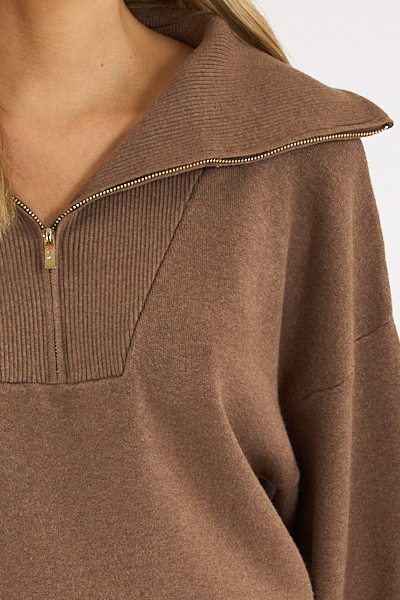 The Olly Half-Zip Knit Sweater has a relaxed fit with dropped shoulders and ribbed cuffs.