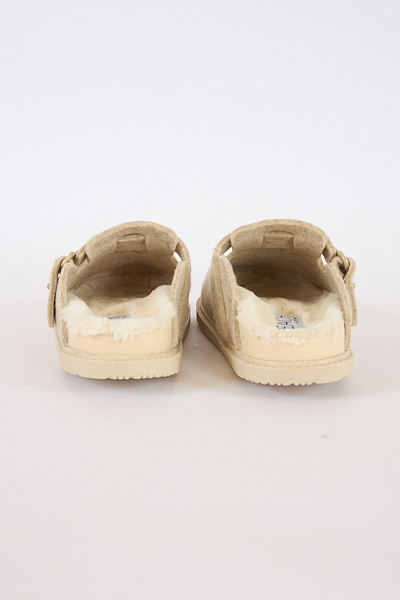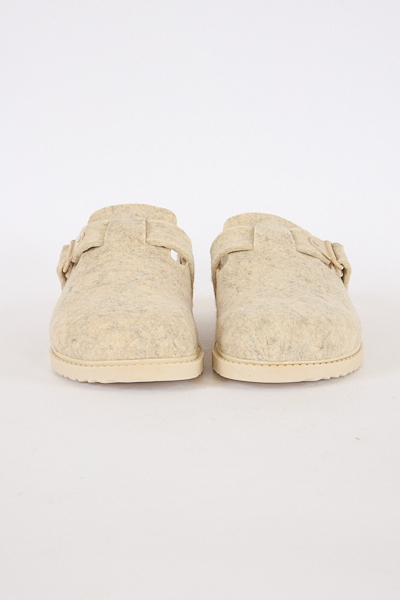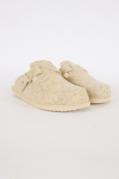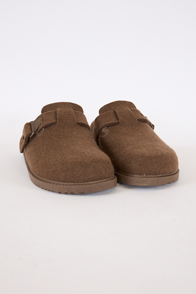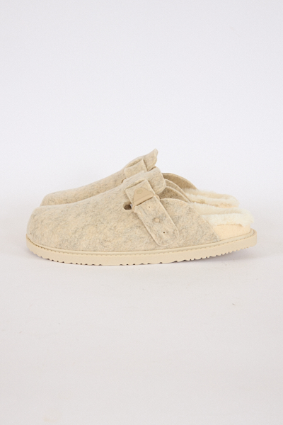 Portland is a casual slip on mule with a felt upper and faux fur inside.