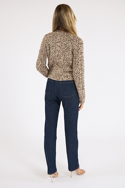 Quinn delivers classic cable knit charm with a shrunken silhouette that feels contemporary, never bulky.