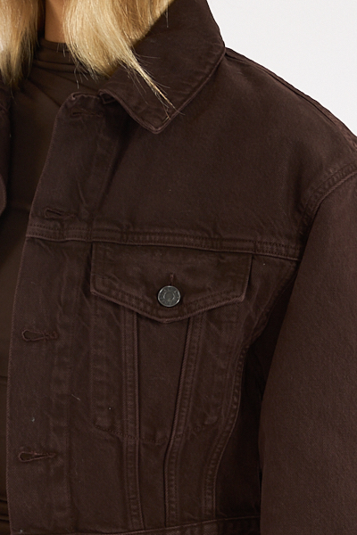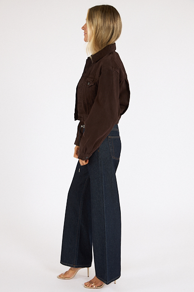 The Radley Jacket is a cropped, structured take on the classic denim trucker, finished with a defined waist and button front closure.