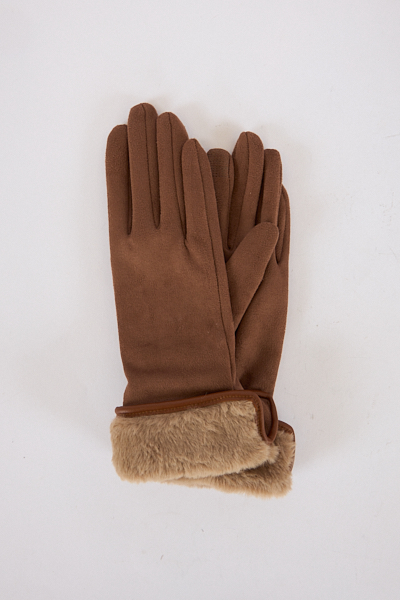 Sleek and functional, this glove features the new stretch faux suede for a polished look and flexible fit. A fold-up faux fur cuff adds warmth, while vegan leather piping completes the design.