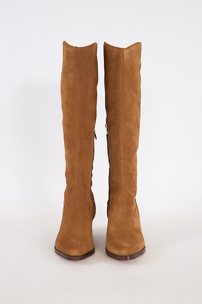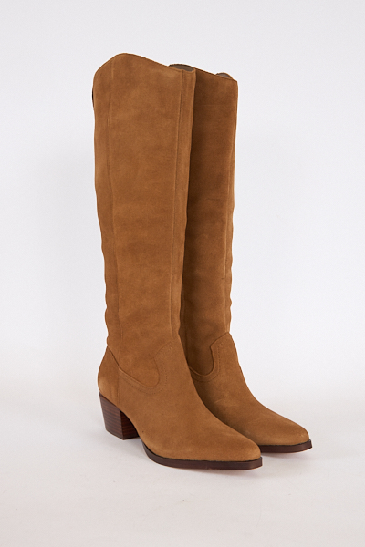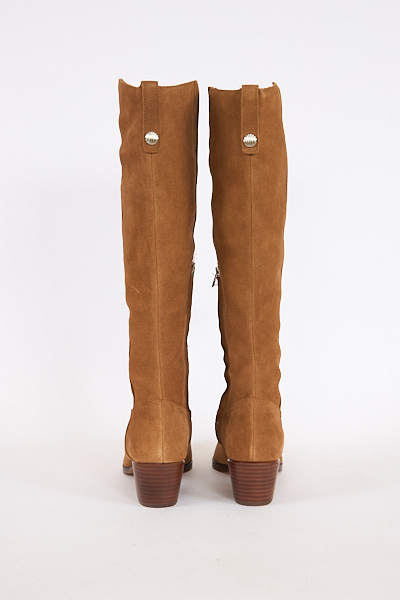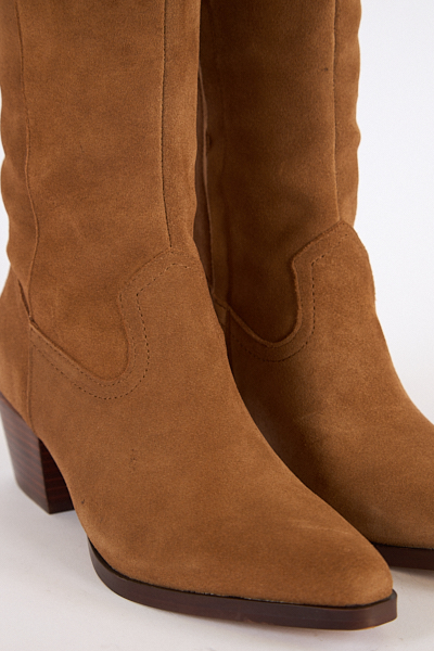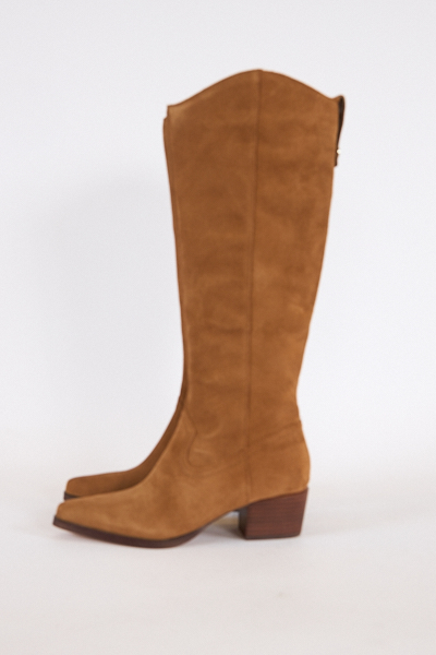 The Virona is a tall waterproof boot designed with a western inspired flair, stacked block heel and curved top.
