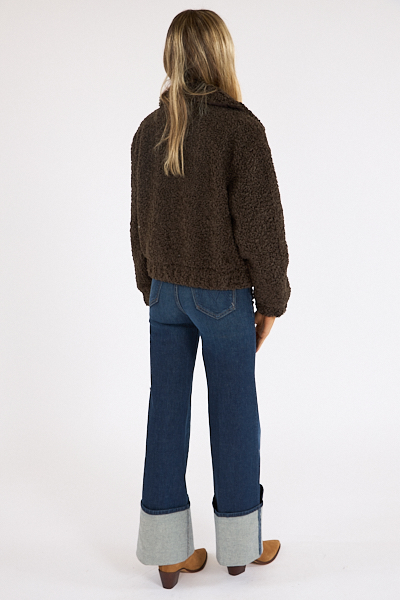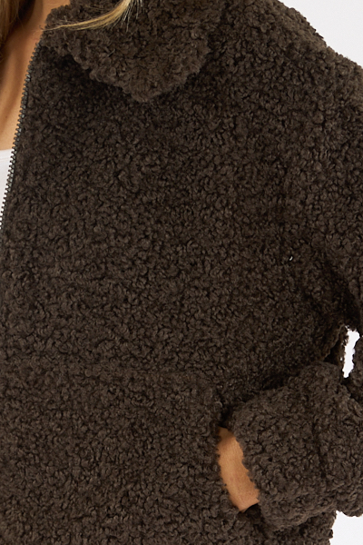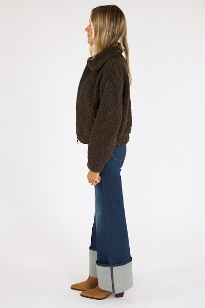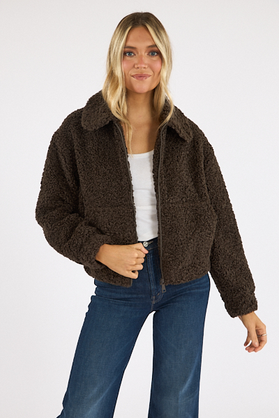 The Ziggy Jacket is made in a sumptuous faux shearling featuring a tonal enamel zipper closure and a peter pan collar.