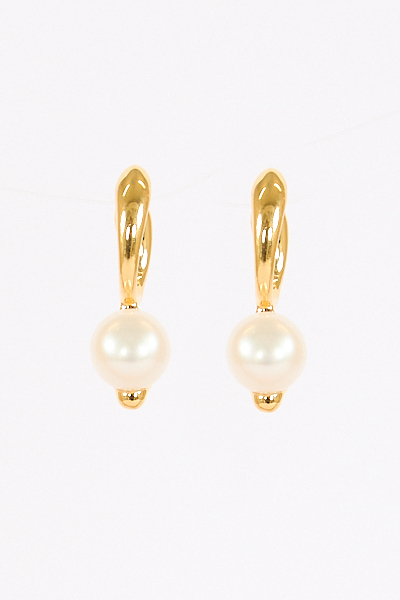 A modern hoop earring with a freshwater cultured pearl pendant.