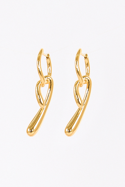 Small asymmetric hoop earrings with fluid knotted pendants.