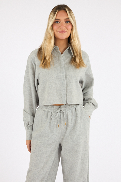 The Izzy Short Blouse is a cropped, tailored silhouette that adds a modern edge to classic office style.