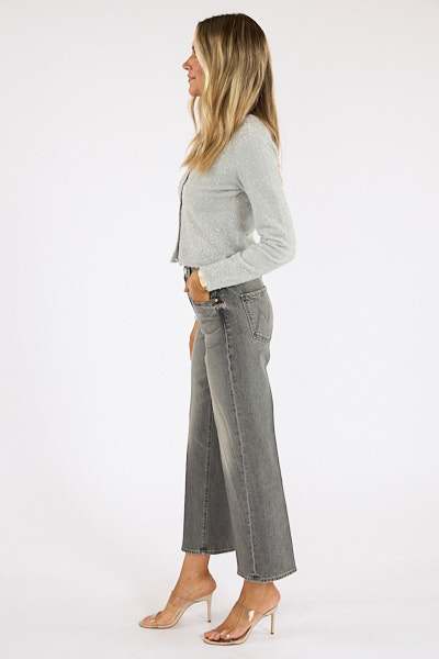 Mid-rise jeans with a loose fit, wide leg, zip fly and ankle-length inseam with a clean hem.