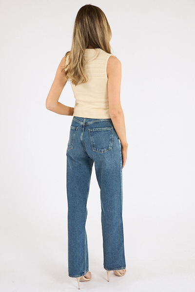 The Nellis Halter Top is a sleeveless knit designed with an open stripe texture.