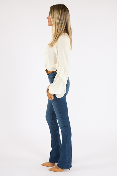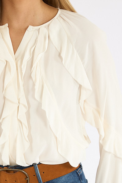 Romantic and soft with just the right amount of ruffles, the Because of You Top is designed with full sleeves, a crew neckline, and relaxed shape.