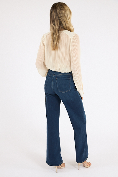 The Change Me Bodysuit is cut from soft, silky satin with pleated details and a low buttoned v-neck.