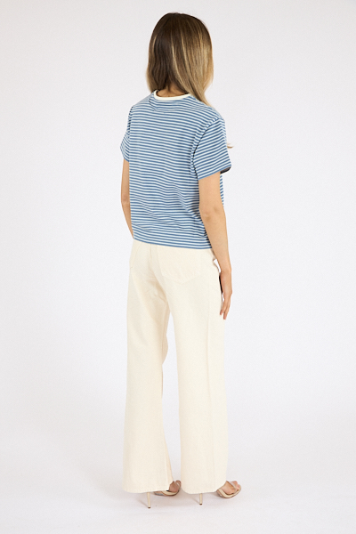 Designed to sit on the hips with a slouchy fit, these high-rise jeans have a zip fly, loose wide leg with a curved outer seam and a 32-inch inseam with a clean hem.